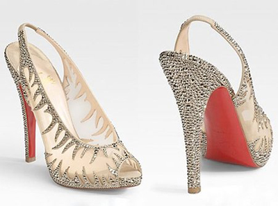 Louboutin的裸色半透明鑲滿水晶的魚嘴高跟鞋摘得了桂冠。