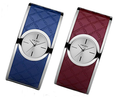 2010秋冬推出斜紋logo系列腕表于寶藍(lán)、紅、黑、金及銀色金屬質(zhì)地表腕上刻印的品牌標(biāo)志組成優(yōu)雅的棋盤格紋。表面及表帶都為不銹鋼材質(zhì)打造,正面有著斜logo的連續(xù)圖樣交叉設(shè)計,扣環(huán)式的表帶可隨手腕大小調(diào)整。在3、6、9、12點鐘方向有著銀色的小時刻度顯示,展現(xiàn)簡約的時尚風(fēng)格。DKNY