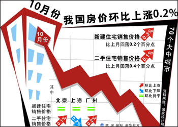 數(shù)據(jù)顯示,10月份,70個(gè)大中城市商品住宅銷售價(jià)格上漲11.9%,其中普通住宅銷售價(jià)格上漲11.0%,高檔住宅銷售價(jià)格上漲14.8%。與上月相比,商品住宅銷售價(jià)格上漲0.3%,其中普通住宅銷售價(jià)格上漲0.4%,高檔住宅銷售價(jià)格上漲0.2%。業(yè)內(nèi)普遍認(rèn)為,房?jī)r(jià)依舊在高位運(yùn)行,紛紛預(yù)測(cè)年內(nèi)價(jià)格松動(dòng)的可能性相對(duì)較小。