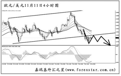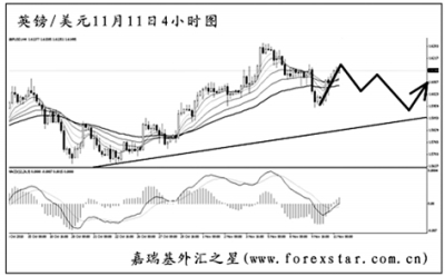 ▲歐元兌美元小幅創(chuàng)出新高之后急速下挫,已經(jīng)將順勢旗形通道的下沿跌破。目前匯價正在考驗日線圖道氏理論顯著低點的支撐1.3710,跌破后還將挑戰(zhàn)均線系統(tǒng)的依托,所以歐元要想真正轉(zhuǎn)為跌勢必須要有效站穩(wěn)在1.3600下方。從力度上分析,歐元調(diào)整過后繼續(xù)下調(diào)的希望較大。