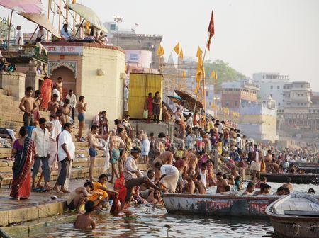 印度的種姓制度在火葬區(qū)也有鮮明體現(xiàn):種姓高的死者,會(huì)在岸邊比較高的石臺(tái)上焚燒,用的木材也是最好的;種姓低的就在河邊焚燒,窮人甚至要靠慈善救濟(jì)買木頭。許多有錢人死去時(shí)都戴著昂貴的珠寶,尤其是那些婆羅門的女人,許多珠寶是無法被火熔掉的,而且死者家屬也不會(huì)去灰堆里撿這些東西。因此每天黎明火葬相對(duì)稀疏的時(shí)段,不少印度人拿著大篩子到這里來淘珠寶,找到后就近在河邊清洗,然后拿去變賣。