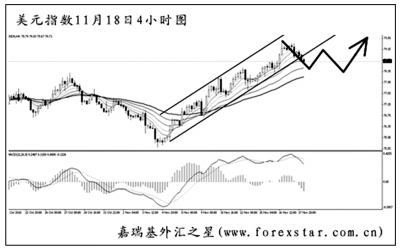 美元指數(shù)自低位反彈的力度強勁,已經(jīng)將日線圖道氏理論最后一個顯著高點78.35升破,同時,均線系統(tǒng)也被突破,中線的跌勢暫時告一段落。從圖上看,美元指數(shù)運行在一個上升通道當中,目前價格小幅跌破通道下沿,預計后市展開一小波下調(diào)的概率較大,但在4小時圖均線系統(tǒng)的依托下有望再度創(chuàng)出新高。