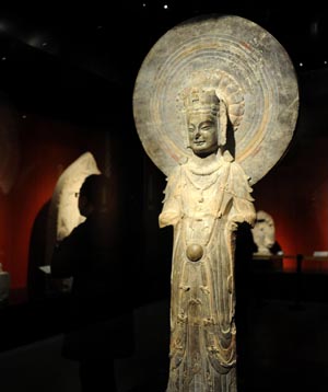 11月16日,位于濟南市的山東博物館新館舉行開館儀式,新館占地210畝,主體建筑面積8.29萬平方米,廣場約10萬平方米,收藏有歷史文物10萬余件,自然標(biāo)本8000余件,藏書12萬冊,尤以陶瓷器、青銅器、書畫、甲骨、簡牘、漢化石像、古籍善本等收藏最具特色。新館展覽面積1.5萬平方米,展線總長約2000米,展出各類文物4500余件,涉及玉石器、青銅器、瓷器、書畫等20余個門類。 圖為山東博物館新館鎮(zhèn)館之寶之一、被譽為“東方維納斯”的蟬冠菩薩北魏佛教造像。