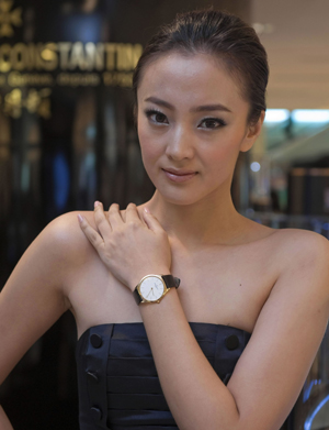 江詩丹頓2010年高級腕表巡展日前在香港尖沙咀海港城舉行,現(xiàn)場展出了100多枚腕表作品。圖為模特在展示一款腕表作品。