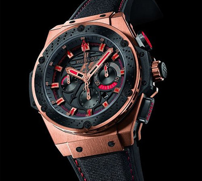 Gold獨特處就在于將玫瑰金的原始配方加入鉑金原料,永保玫瑰金表殼閃耀永恒的貴金屬光彩,而面盤則采用多層次的處理,十二點鐘方位Hublot與F1聯(lián)名的Logo下之面盤以胎紋式紋路處理,各性能視窗則仿照了F1賽車的儀表盤,以玫瑰金時標(biāo)與指針,搭配紅色長效型夜光涂料,明白宣示頂級制表與頂級賽車間空前輝煌的合作策略。除了F1官方時計限量表之外,Hublot近五年如傳奇般雀起的聲譽,也獲得F1首肯,授權(quán)以F1義大利的傳奇賽道Monza為名,發(fā)表“F1Monza”大獎賽限量腕表。