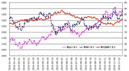 由于美元指數(shù)持續(xù)走強(qiáng),國(guó)際油價(jià)在2010年11月11日當(dāng)天創(chuàng)兩年新高后便沖高回落,隨后國(guó)際油價(jià)更是走出一波快速下跌的行情。可以說(shuō),近期美元指數(shù)不僅是影響國(guó)際油價(jià)的重要因素,而且在時(shí)間序列上,美元指數(shù)也是領(lǐng)先國(guó)際油價(jià)的。