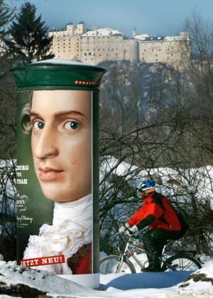 如今在薩爾茨堡,莫扎特的影子無處不在,莫扎特巧克力球、莫扎特酒、莫扎特大學(xué)、莫扎特街……莫扎特是薩爾茨堡的驕傲,也是奧地利人的驕傲。奧地利人還將莫扎特的頭像鑄在1歐元硬幣的背面,讓它流傳世界。