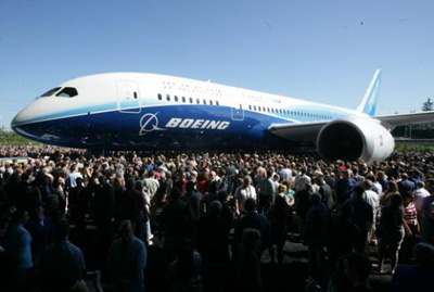 北京時(shí)間2007年7月9日7時(shí)27分波音787客機(jī)正式下線