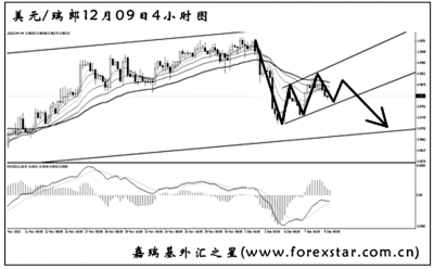 ▲美元兌瑞郎仍然運(yùn)行在日線圖的大旗形下跌中繼內(nèi)部,若這個旗形向下突破,則還將會有很深的一輪探底走勢。圖中匯價形成了一個小旗形通道,均線系統(tǒng)壓制排列,配合著中線的方向來看,美元兌瑞郎選擇繼續(xù)下行的概率很大,操作上以等待小時圖出現(xiàn)向下的主次節(jié)奏后做空為主。