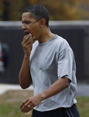 這就是發(fā)生在11月26日華盛頓麥克奈爾堡軍事基地的一幕。從圖片上可以看出,奧巴馬身著運(yùn)動(dòng)衣,手拿紙巾壓著嘴巴,在數(shù)名保鏢簇?fù)硐,走上了?吭谇驁?chǎng)邊不遠(yuǎn)的總統(tǒng)專車。記者透過車玻璃,拍到了一張奧巴馬坐在車內(nèi)的照片,奧巴馬看似神情沮喪。