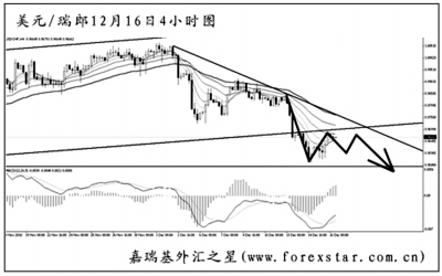 ▲美元兌瑞郎發(fā)力跌破了日線圖旗形中繼的下沿,從中線上看,匯價有望創(chuàng)下0.9460下方的新低。短線在回抽下沿,同時受圖中下降趨勢線的壓制作用,將保持下跌的主基調(diào)。由于短線反彈的力度并不弱,做空需要等待下跌動能再度暴發(fā),關(guān)注0.9710一線阻力。