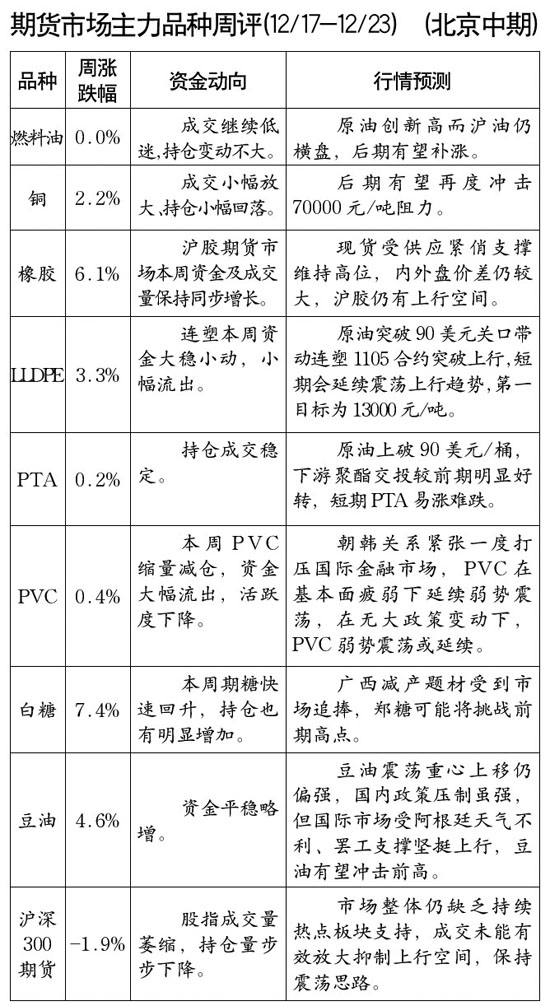 期貨市場主力品種周評[12.17-12.23]