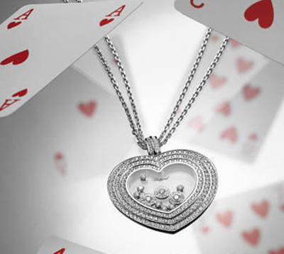 艷麗的快樂鉆石吊墜鑲飾了三行鉆石,專為盛大的場(chǎng)合而設(shè)計(jì),貼靠在雅致的低胸衣領(lǐng)上閃耀著耀目光芒。燦爛的鉆石隨著滿載愛意的心臟一起跳動(dòng)。