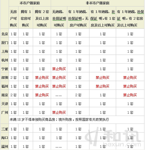 各城市限購(gòu)令對(duì)比