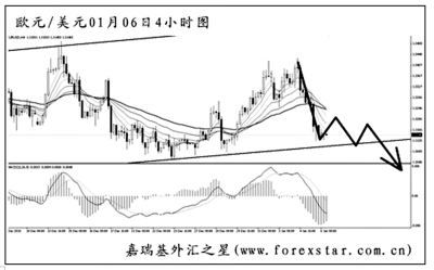 ▲澳元兌美元小幅創(chuàng)出日線圖新高之后急速下行,形成一個(gè)2B原理走勢(shì)。匯價(jià)下跌斜率很大,已經(jīng)將最近的一條下降趨勢(shì)線跌破,圖中均線系統(tǒng)即將轉(zhuǎn)為空頭排列。澳元下方面臨的首要強(qiáng)支撐為日線圖的另外一條上升趨勢(shì)線,位置在0.9860一線,跌破后方可宣告澳元階段性筑頂?shù)某晒Α?/P>