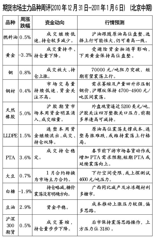 期貨市場主力品種周評[2010.12.31-2011-01-06]