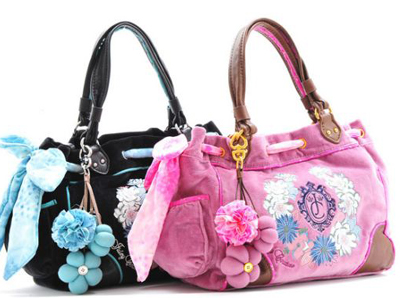 Juicy Couture 2011年早春系列延續(xù)了70年代柔美造型,全新Riviera手袋系列,以皮革精心制作,并飾有Juicy Couture標志的金屬鎖扣細節(jié),添加了絲綢蝴蝶結、Juice標志性的桃心配飾等元素,依舊甜美無敵。