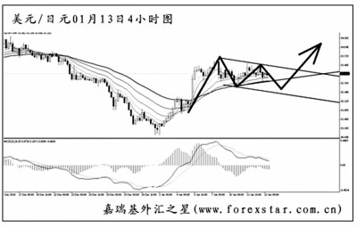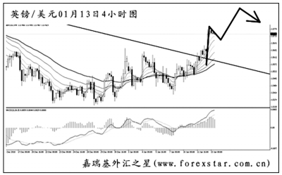 ▲歐元兌美元小幅創(chuàng)出日線圖新低之后未能加速下行,短線反彈的斜率較大。圖中下降趨勢線為日線圖形成,由于均線系統(tǒng)已被升破,后市歐元有望直接挑戰(zhàn)趨勢線的阻力作用。短線存在一波做多機會,但穩(wěn)健投資者還是等待歐元上調到位后繼續(xù)順勢做空為好。