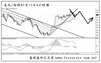 ▲美元兌瑞郎在突破了此前的下降通道上沿后,上沖力度強勁,圖中的均線系統(tǒng)已經(jīng)轉為向上排列。短線MACD發(fā)生了頂背離信號,同時上升趨勢線跌破,后市面臨一波下行回調。美元兌瑞郎下方的首要支撐在道氏理論點0.9595一線,若跌破,則匯價有望向0.9450一帶調整。