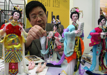 記者最近就我國(guó)非物質(zhì)文化遺產(chǎn)的生存狀態(tài)進(jìn)行調(diào)研發(fā)現(xiàn),非遺項(xiàng)目的傳承問(wèn)題仍未完全解決,部分項(xiàng)目甚至面臨“人亡藝絕”的困境。非遺項(xiàng)目傳承人建議,國(guó)家對(duì)他們應(yīng)加強(qiáng)扶持,“扶上馬”,最好再“送一程”。北京絹人傳承人滑樹(shù)林在首屆“非遺”博覽會(huì)上展示技藝。