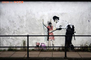 班克斯的涂鴉以風(fēng)格鮮明、幽默機(jī)智征服公眾。部分作品曾在拍賣行拍出高價(jià),更被好萊塢大牌明星布拉德?皮特和克里斯蒂娜?阿吉萊拉收藏。