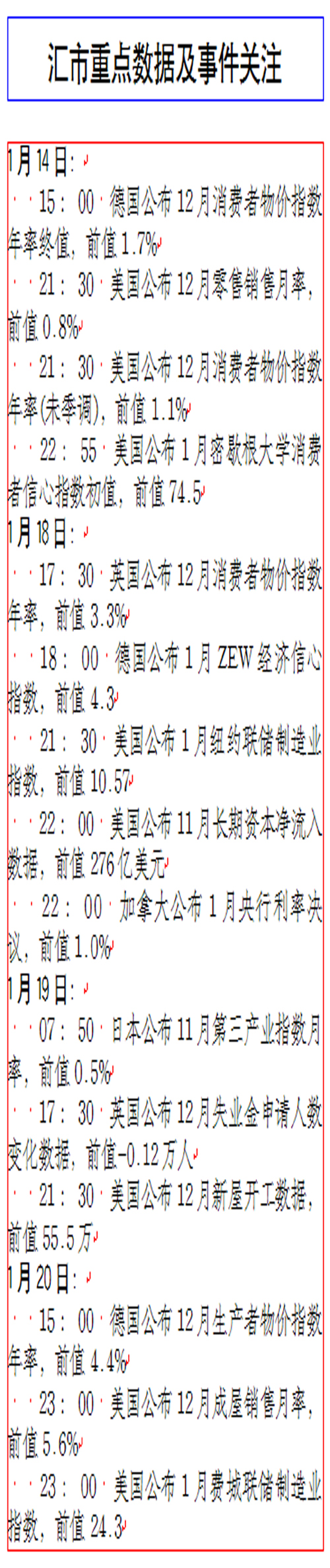 匯市重點數(shù)據(jù)及事件關(guān)注[01.07-01.13]