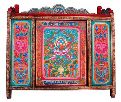唐卡彩繪家具耗費時間少則數(shù)月,多則數(shù)年,畫匠隨心所至,除雪水山泉外,常以自身的血、唾等體液自行調(diào)制,據(jù)傳,松贊干布用自己的鼻血繪成白拉姆像,這也正是唐卡的獨特藝術(shù)魅力之所在。每幅唐卡佳作,皆能以圖傳情,色澤變幻、瑰麗無儔,均為惟一之制。
