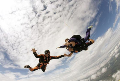 說(shuō)到這里,童邵開(kāi)始了滔滔不絕的自夸,“如果沒(méi)有膽量和信心的話(huà),玩的時(shí)候也會(huì)冒虛汗的。我第一次跳‘AFF’的時(shí)候就是一背的冷汗啊。”說(shuō)到這里,童邵哈哈大笑起來(lái),“當(dāng)然,后來(lái)的時(shí)候就好多了。當(dāng)打開(kāi)傘之后,那種突然之間失重的感覺(jué)與穿行云間的美妙是無(wú)法描述的啦!