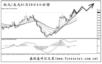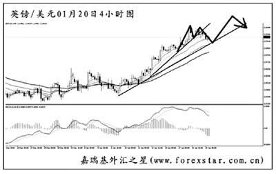 歐元兌美元短線的上升趨勢保持完好,圖中趨勢線和均線系統(tǒng)依托匯價,目前歐元正在考驗去年12月中旬的高點1.3500一線阻力,突破后將結束區(qū)間震蕩的走勢,打開進一步的上行空間。短線雖然發(fā)生了角度明顯的MACD頂背離信號,但在有效跌破趨勢線之前,繼續(xù)保持歐元看漲的思路。