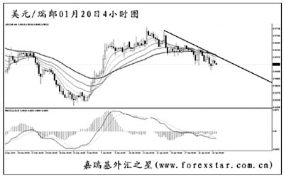 美元兌瑞郎此前小幅創(chuàng)出新高之后轉為下落節(jié)奏,但中途強動能交替頻繁,匯價走勢震蕩凌亂。圖中均線系統(tǒng)被反復穿越,客觀趨勢橫盤。由于目前的下跌力度并不強勁,很難預期美元兌瑞郎會直接下攻前方低點的支撐0.9300一線。短線以看空為主,待趨勢線升破后再及時調(diào)整思路。
