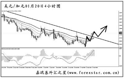 美元兌加元小幅創(chuàng)出新低之后反身上行,力度強勁,將圖中下降趨勢線強力升破,目前匯價正在考驗此前被跌破的日線圖前方低點阻力0.9930,若成功站穩(wěn)其上,美元兌加元有望展開一波中線的漲勢。短線首先關注道氏理論高點0.9975的阻力,升破后將結束此前的下跌趨勢。