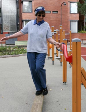 在芬蘭首都赫爾辛基的一個老年人活動公園,一位老年婦女在獨(dú)木上鍛煉。老人活動公園為住在附近的老人提供了一個健身和聚會的場所。新華社記者 趙長春/攝 |