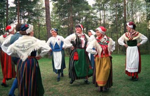 赫爾辛基市一居民區(qū)的老年婦女經(jīng)常匯集在一起,身穿民族服裝踏歌而舞。新華社記者 陳金嵐/攝 |