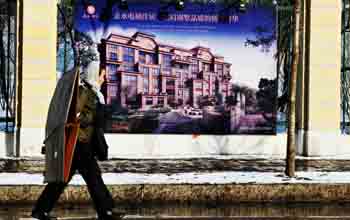 2月19日,一名行人從一樓盤宣傳廣告板前走過。 2月18日,哈爾濱市政府正式下發(fā)《關(guān)于進(jìn)一步做好哈爾濱市房地產(chǎn)市場調(diào)控工作有關(guān)問題的通知》,《通知》規(guī)定,擁有兩套住房的哈爾濱市家庭將不能再買房。新華社記者