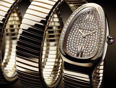 腕表可說再次確認(rèn)了Bulgari的這一點堅持。單圈、雙圈以至2011年腕表將在您腕間繞上七圈……品牌著名的Serpenti腕表把Bulgari與女性氣質(zhì)糅合為一,以嶄新姿態(tài)向歷史致意,向堅守自然美的精神致敬。