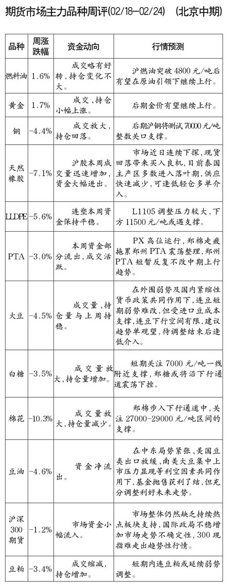 期貨市場主力品種周評[02.018-2.24]
