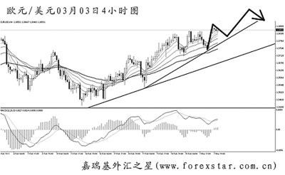 ▲歐元兌美元正在考驗前方高點1.3860的阻力,若成功升破,后市的上升空間將進一步被打開。圖中有兩條上升趨勢線,下方為日線圖形成,上方為4小時圖中畫出,由此可見,歐元短線的上漲力度有所加強。預(yù)計匯價有望向趨勢線一帶發(fā)起回調(diào),但后市繼續(xù)沖高的希望很大。