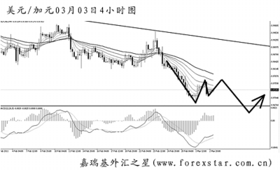 ▲美元兌加元的下跌勢頭良好,圖中趨勢線為日線圖形成,壓制匯價一路下行。目前美元兌加元正在考驗0.9710一線的支撐,預(yù)計跌破的概率較大,后市將直指2007年11月低點0.9050附近。小時圖的下跌斜率陡峭,最好等待發(fā)生良好的次要節(jié)奏調(diào)整之后再行入場做空。此時博弈做多為時尚早。