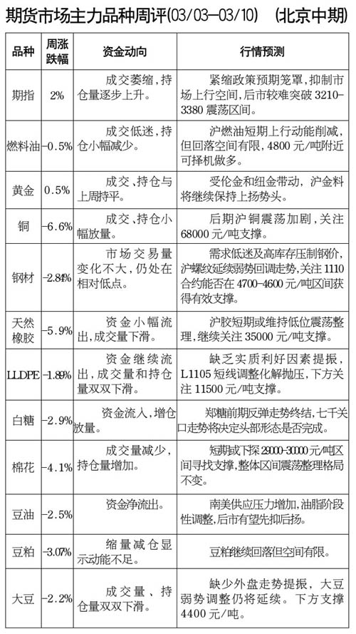 期貨市場主力品種周評[03.03-03.10]