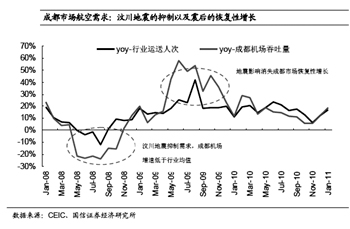 另一方面,借鑒汶川地震影響成都市場的經(jīng)驗(yàn)數(shù)據(jù),震后6個(gè)月成都機(jī)場吞吐量僅偏離行業(yè)均值20%,年化僅為10%,且地震產(chǎn)生的心理影響消失之后,次年成都市場的航空需求實(shí)現(xiàn)了恢復(fù)性增長。