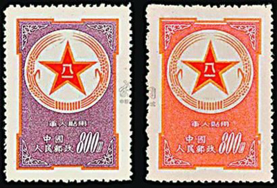 2、新中國發(fā)行過一批軍用郵票,由于發(fā)行量不同,“藍軍郵”價值百萬元,“紫軍郵”市價兩三萬元,“黃軍郵”僅千余元,造假者以“黃軍郵”為底,經(jīng)過截薄、黏貼、印刷變成“紫軍郵”,眼光稍遜者很容易魚目混珠。