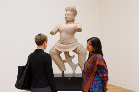 2011年亞洲藝術(shù)周日前在紐約開幕。今年的紐約亞洲藝術(shù)周活動將由5家拍賣行、18個博物館和亞洲藝術(shù)機構(gòu),以及34家藝術(shù)品交易商共同舉行。期間將有眾多關(guān)于亞洲藝術(shù)收藏品的拍賣、展覽和研討等活動。 圖為一個10世紀砂巖制的東南亞雕像在美國紐約蘇富比2011年亞洲藝術(shù)周拍賣預(yù)展上展出。新華社發(fā)