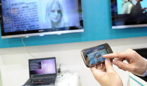 在第十九屆中國國際廣播電視信息網(wǎng)絡(luò)展覽會(huì)上,一家公司的工作人員在展示電腦、電視、手機(jī)三屏互動(dòng)系統(tǒng)。新華社記者金良快攝 |