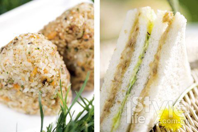 野餐的風(fēng)格很多,時下最流行的是低碳環(huán)保路線,可以自己在家做一些簡單容易攜帶的食物,油炸、烘焙、涼拌的食物更加適合保存。比如三明治、壽司、沙拉、飯團——彼得·梅爾曾經(jīng)說:美味的三明治是成功野餐的一半。而飯團,更是日本人野餐的最愛,在櫻花盛開的季節(jié),幾乎所有在櫻花樹下鋪開一張漂亮花布的賞櫻者,都會帶上手工制作的美味飯團。除了食物的烹飪方式,食材的選擇也很重要,就拿壽司來說,魚生類壽司很容易因為時間和溫度的原因變質(zhì),而熟食做的壽司就可以保留得更好。朋友聚會的話,不妨規(guī)定每個人帶一個菜,互相分享。