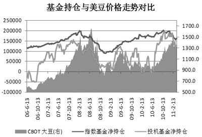 總的來看,在豆類市場中,投機基金下調(diào)大豆、豆油凈多持倉比例,而增加豆粕份額;指數(shù)基金則保持穩(wěn)中略增的局面。