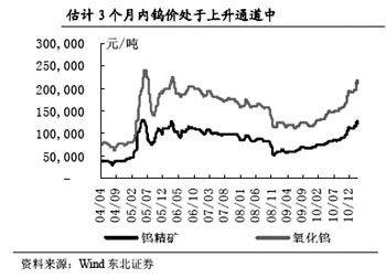 鎢品價(jià)格上漲與鎢業(yè)務(wù)產(chǎn)能擴(kuò)張?jiān)龃罅藦B門(mén)鎢業(yè)業(yè)績(jī)大幅增長(zhǎng)的確定性;稀土板塊產(chǎn)業(yè)鏈向上延伸的可能有望顯著提升其股價(jià)估值水平。在上游資源高度集中、供給控制力度加大的情況下,中投證券認(rèn)為,鎢價(jià)前期歷史高點(diǎn)有望是未來(lái)的底部,看好行業(yè)發(fā)展,看好產(chǎn)業(yè)鏈完整、高端產(chǎn)品開(kāi)始貢獻(xiàn)盈利的廈門(mén)鎢業(yè)。