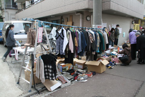 人們?cè)谀亢诖ǜ浇p櫻期間舉行義賣活動(dòng)援助地震災(zāi)區(qū)。記者