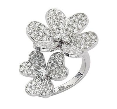 現(xiàn)在,Frivole系列以白K金及更多的鉆石展示其奢華高貴的另一面。全鉆的Frivole花朵依然綻放在精致的耳環(huán)、高雅的指環(huán)及垂飾、鏈墜上,藉著幸運(yùn)草的奇妙功效傳遞歡樂愉快的氣息。此外,一向喜愛與時(shí)尚界創(chuàng)造經(jīng)典的Van