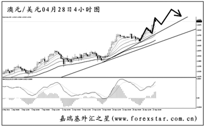 ▲澳元兌美元近來的強(qiáng)勢可謂令人咋舌,匯價不斷刷新高點(diǎn),似乎有一飛沖天的架勢。日線圖上看,始于去年5月的上升趨勢線不斷調(diào)整,但澳元始終沒有筑頂成功。短線匯價的上漲力度強(qiáng)勁,4小時圖中的趨勢線角度有所加大,目前澳元面臨一波下行回落,但跌破趨勢線的概率不大,后市有望再度創(chuàng)出新高。