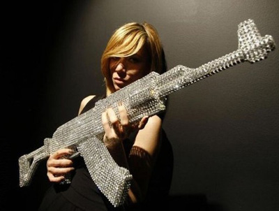 意大利雕塑家波拉(Nicola Bolla)日前在米蘭設計周展出,利用施華洛世奇(SWAROVSKI)水晶,做出AK-47步槍。